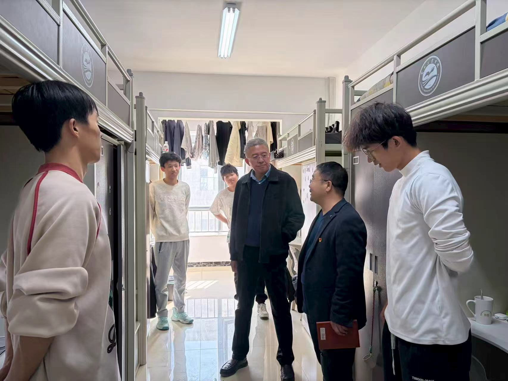 走访中,陈伟逐一查看宿舍卫生、安全设施,与学生亲切交谈,询问大家的学习、生活及就业等情况,并勉励学生要沉心静气夯实语言基础,既要勤学苦练听说读写基本功,也要主动投身各类实习与实践,在真实场景中磨砺运用能力。