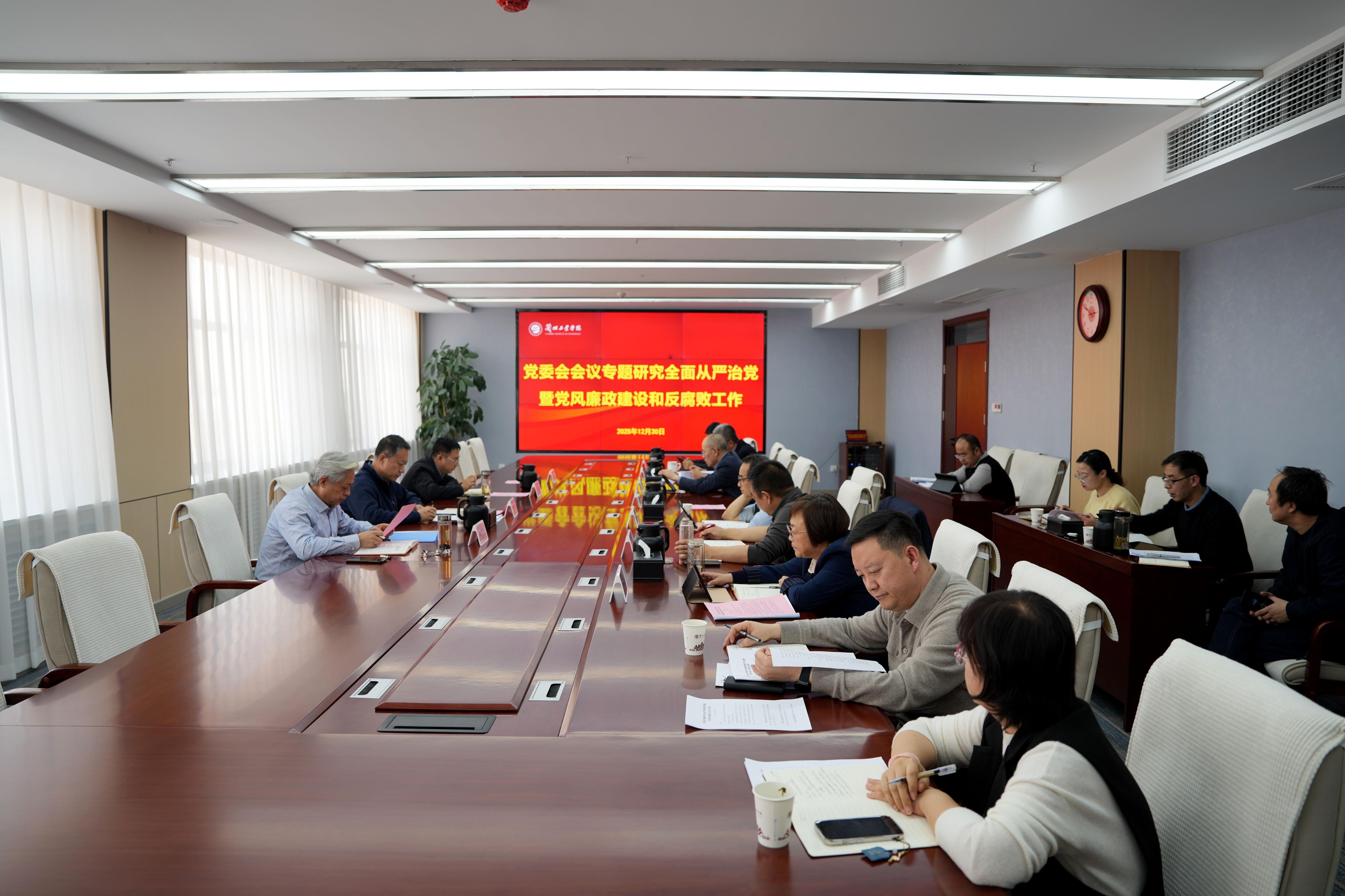 12月30日,学校在行政楼506会议室召开党委会议,专题研究全面从严治党、党风廉政建设和反腐败工作,党委书记白江平主持会议并讲话。